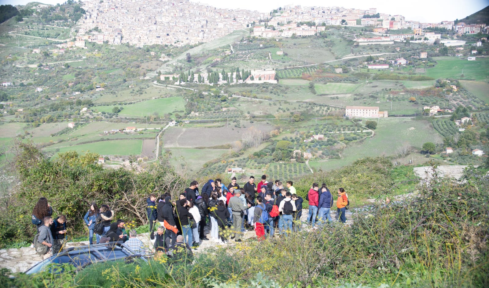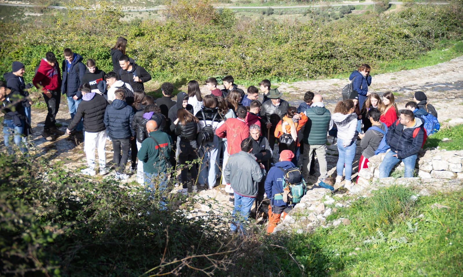L’escursione è stata condotta sul Monte dei Cavalli (o montagna dei Cavalli, o ancora monte San Lorenzo), rilievo calcareo di 1.007 m s.l.m. della catena montuosa dei Sicani ricadente nel territorio di Prizzi. Passeggiata ecologica di grande valore non solo paesaggistico/naturalistico, ma anche storico. Con gli studenti e gli associati presenti, lungo il sentiero si è discusso molto sull’educazione ambientale, lo studio delle piante endemiche ed il riconoscimento di qualche pianta fitoalimurgica.